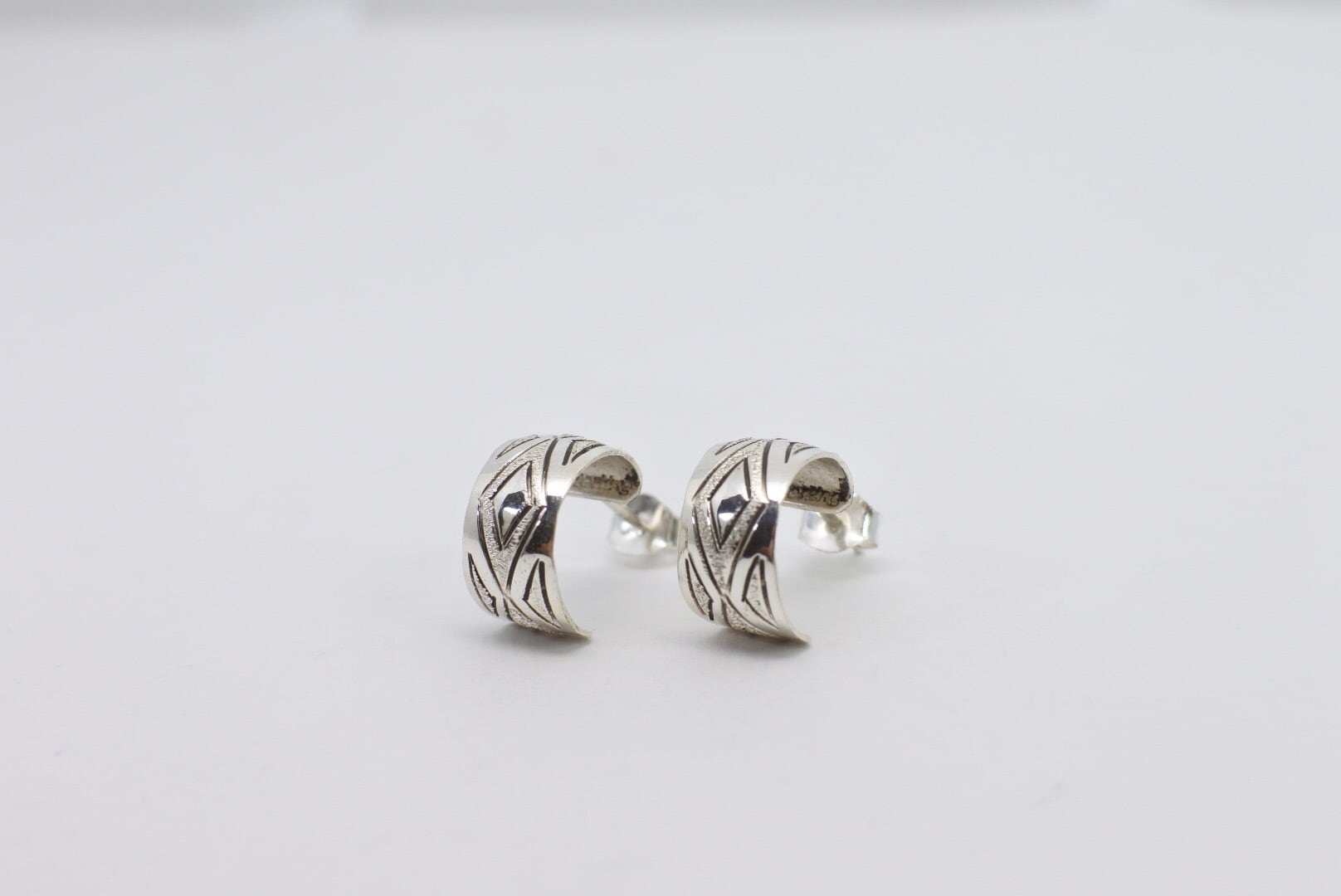 細かいスタンプなどネイティブらしい柄のフープピアスです。
