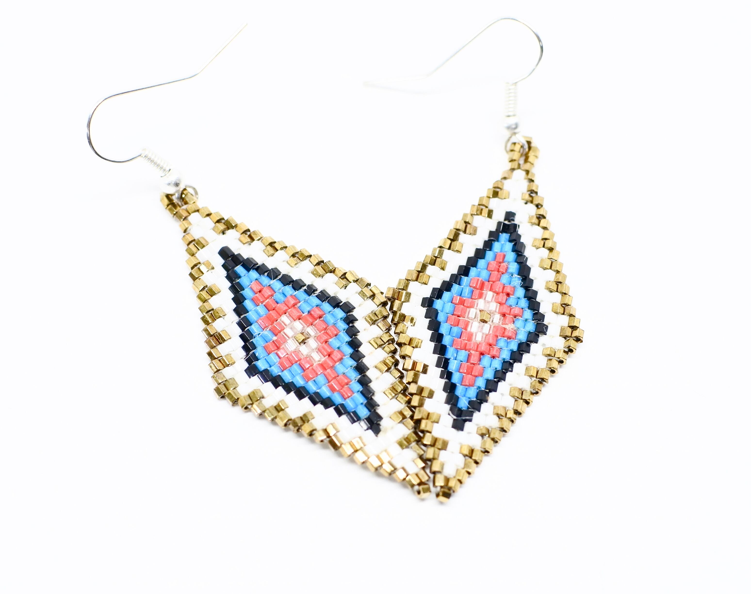 インディアンジュエリー ビーズピアス ネイティブ柄 希少 ハンドメイド 人気 新作